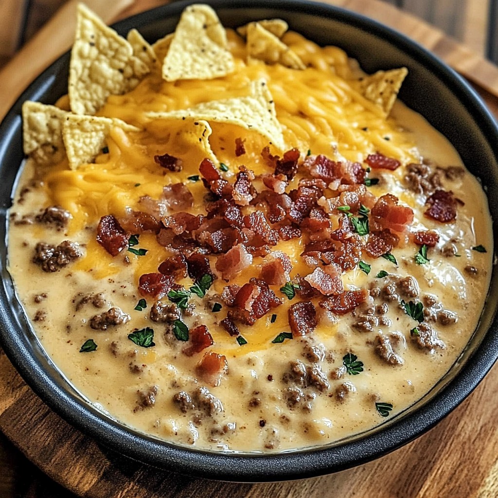 All the flavors of a bacon cheeseburger—in a creamy, dippable queso! Perfect for game day or parties.
