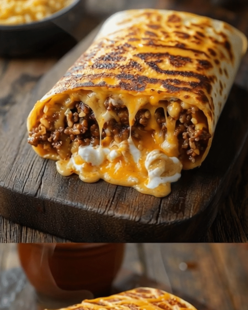 If you love Taco Bell’s famous Grilled Cheese Burrito, this homemade copycat version is going to blow your mind! 😍 Gooey melted cheese, perfectly seasoned beef, fluffy rice, and creamy sauces are all wrapped in a warm tortilla — then topped with more cheese and grilled until golden and crispy. It’s indulgent, cheesy, and loaded with bold flavors in every bite. The best part? You can make it right at home in under 40 minutes!