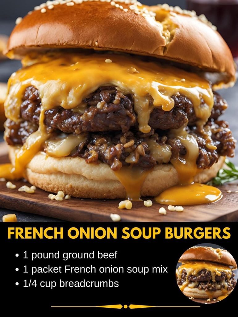 These French Onion Soup Burgers combine the rich, savory flavors of French onion soup with the classic American burger, creating a delicious and satisfying meal.