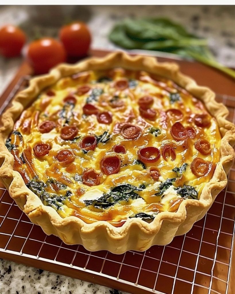Let the quiche cool for 5–10 minutes before slicing. Serve warm or at room temperature.